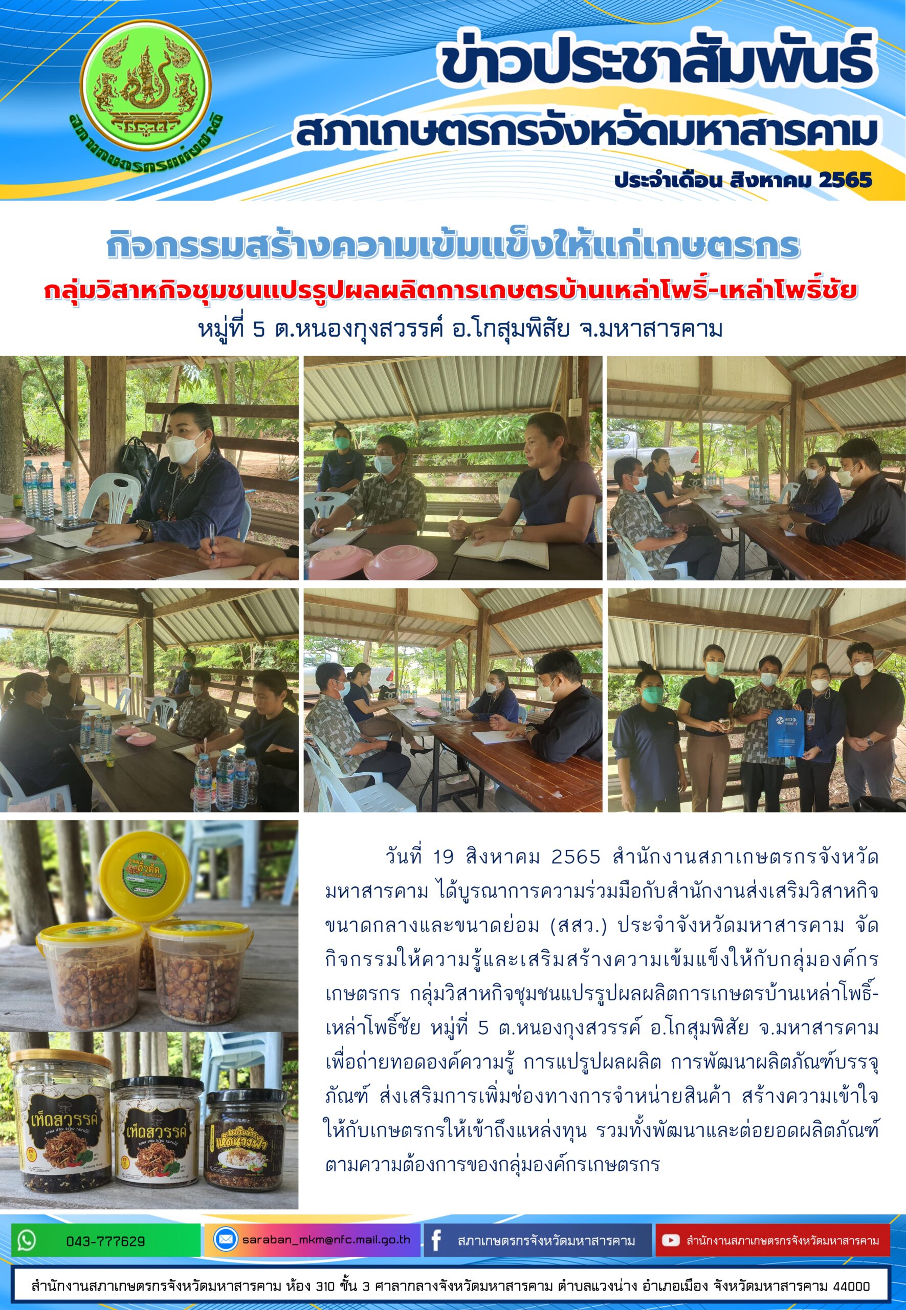 กิจกรรมสร้างความเข้มแข็งให้แก่เกษตรกรกลุ่มวิสาหกิจชุมชนแปรรูปผลผลิตการเกษตรบ้านเหล่าโพธิ์-เหล่าโพธิ์ชัย 19 ส.ค. 25657 พ.ย. 2025Adminitratorข่าวกิจกรรม, ข่าวประชาสัมพันธ์