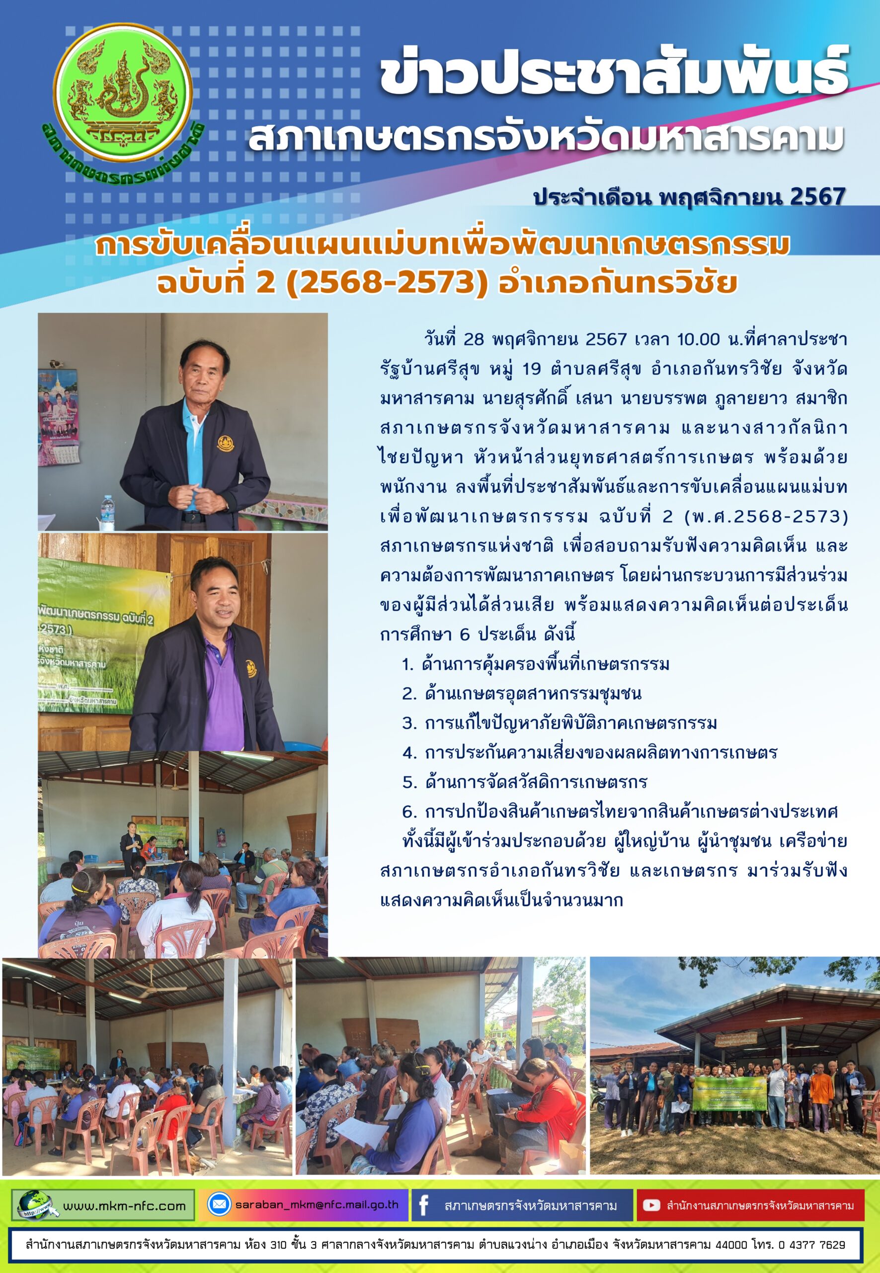 • สภาเกษตรกรจังหวัดมหาสารคามลงพื้นที่รับฟังปัญหาพี่น้องเกษตรกร