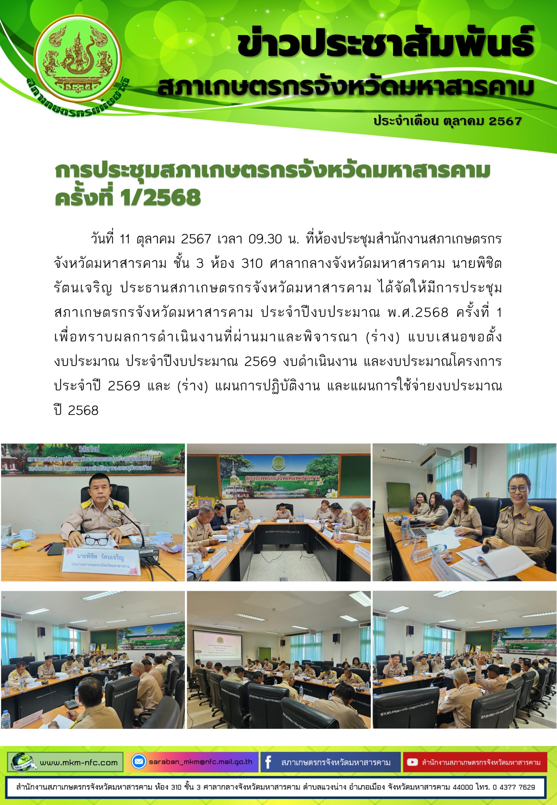 การประชุมสภาเกษตรกรจังหวัดมหาสารคาม ครั้งที่ 1/2568 11 ต.ค. 25678 พ.ย. 2025Adminitratorข่าวประชาสัมพันธ์