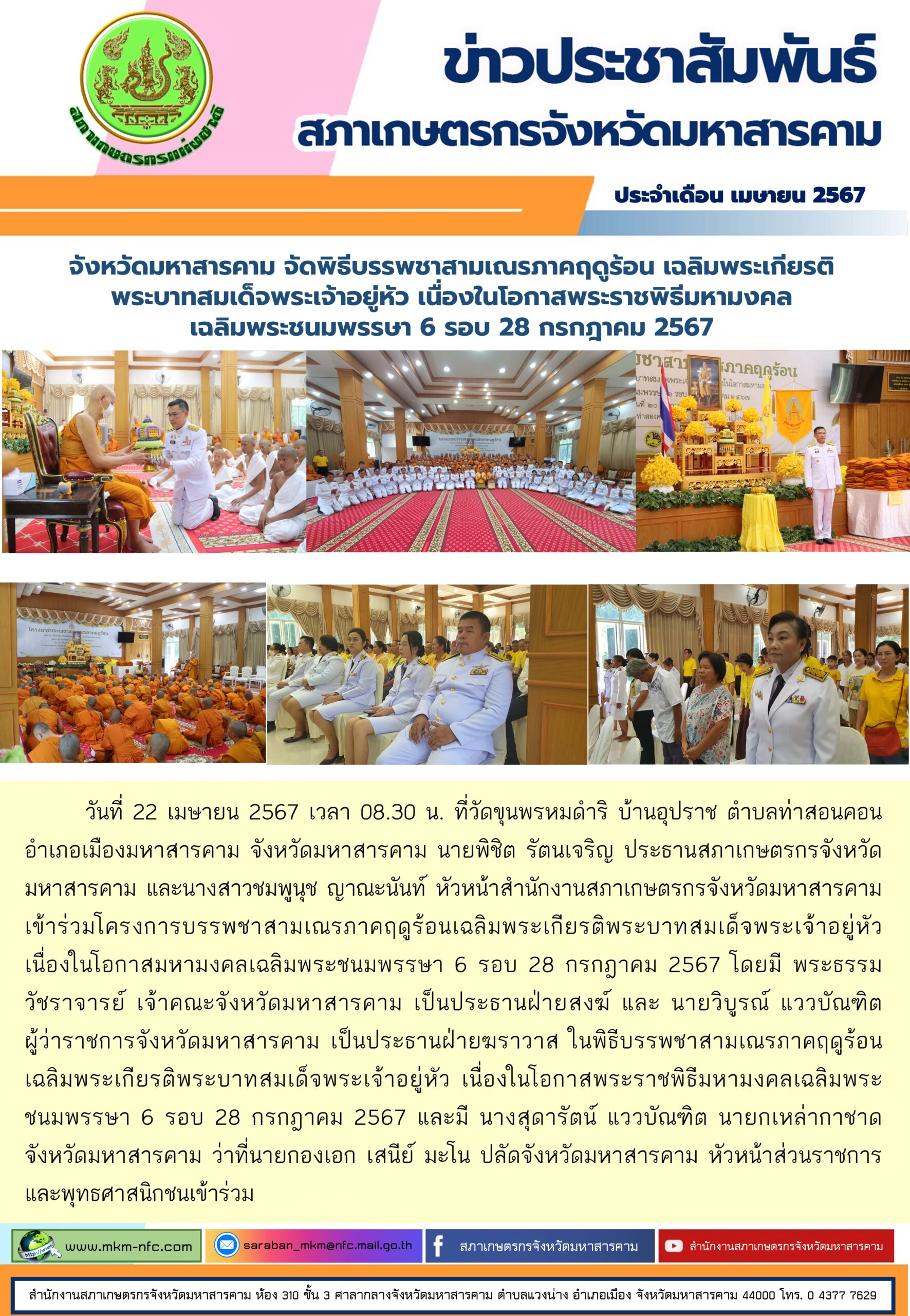 จังหวัดมหาสารคาม จัดพิธีบรรพชาสามเณรภาคฤดูร้อน เฉลิมพระเกียรติพระบาทสมเด็จพระเจ้าอยู่หัว เนื่องในโอกาสพระราชพิธีมหามงคล เฉลิมพระชนมพรรษา 6 รอบ 28 กรกฎาคม 2567 22 เม.ย. 25678 พ.ย. 2025Adminitratorข่าวประชาสัมพันธ์
