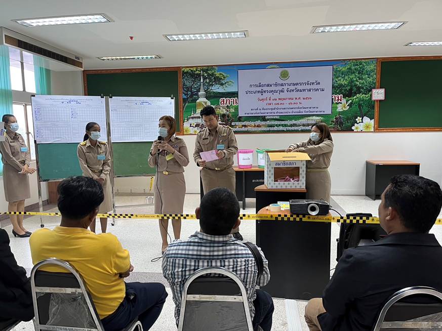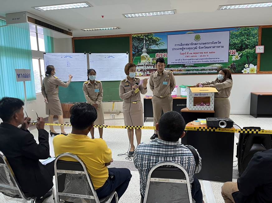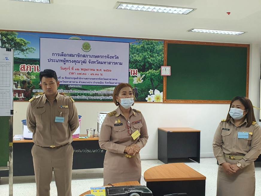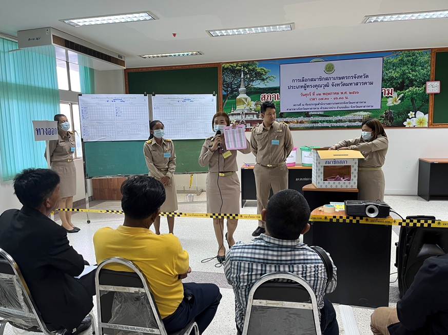 วันที่ 12 พฤษภาคม 2566 นางวนาลัย ไชยแสง หัวหน้าสำนักงานสภาเกษตรกรจังหวัดมหาสารคาม พร้อมด้วยพนักงานสำนักงานสภาเกษตรกรจังหวัดมหาสารคาม ได้ดำเนินการจัดการเลือกสมาชิกสภาเกษตรกรจังหวัด ประเภทผู้ทรงคุณวุฒิ ณ ห้องประชุมสำนักงานสภาเกษตรกรจังหวัดมหาสารคาม ศาลากลางจังหวัดมหาสารคาม ชั้น 3 ห้อง 310 เพื่อให้ได้มาซึ่งสมาชิกสภาเกษตรกรจังหวัด ประเภทผู้ทรงคุณวุฒิเกษตรกรจังหวัด ประเภทผู้ทรงคุณวุฒิ ตามมาตรา 31 (2) แห่งพระราชบัญญัติสภาเกษตรกรแห่งชาติ พ.ศ. 2553 ซึ่งการดำเนินการจัดการเลือกสมาชิกสภาเกษตรกรจังหวัด ประเภทผู้ทรงคุณวุฒิ ในครั้งนี้เป็นไปด้วยความเรียบร้อยสุจริต และโปร่งใส