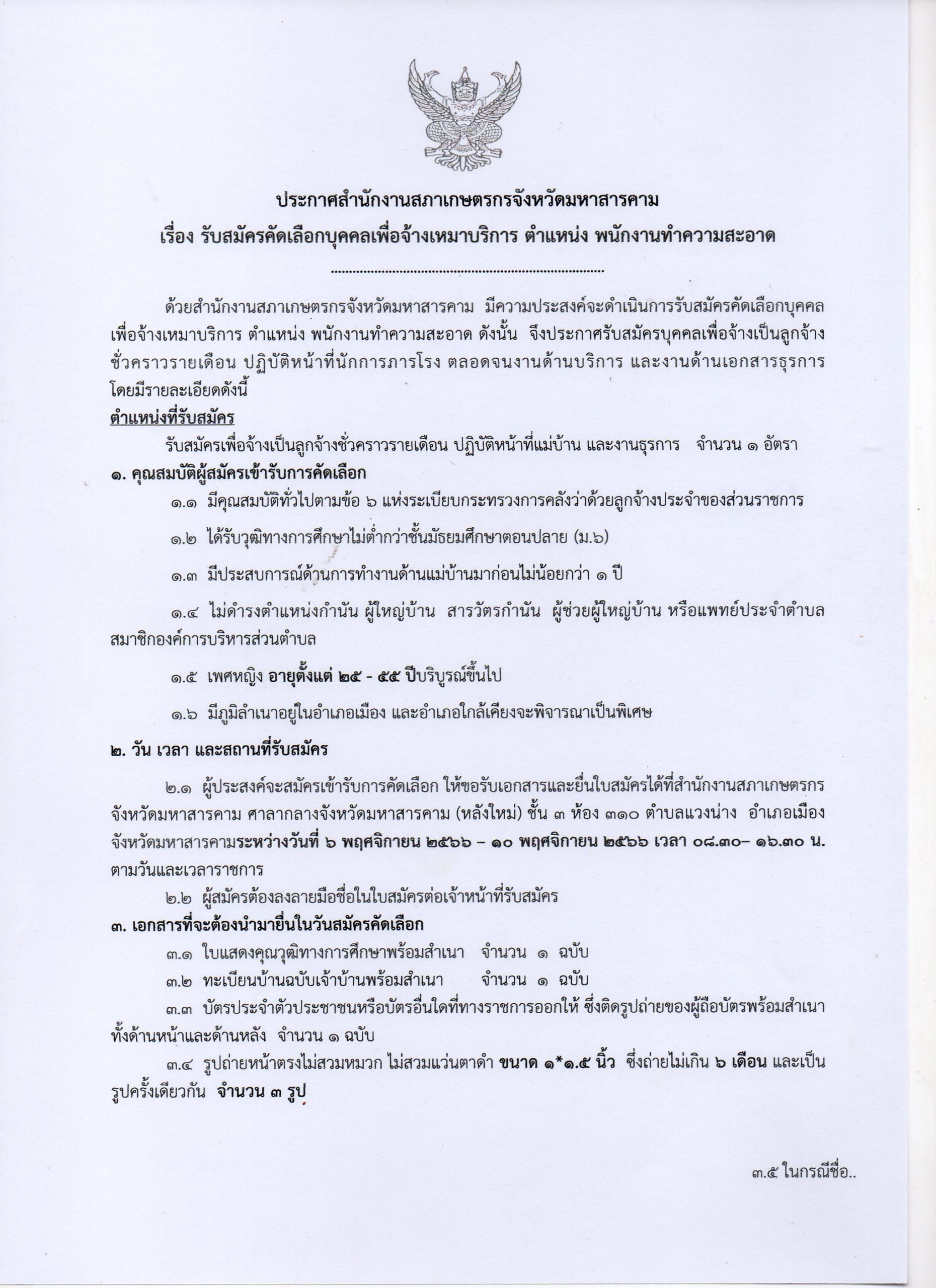 ประกาศรับสมัครคัดเลือกบุคคลเพื่อจ้างเหมาบริการ ตำแหน่ง พนักงานทำความสะอาด 3 พ.ย. 25667 พ.ย. 2025Adminitratorข่าวประชาสัมพันธ์