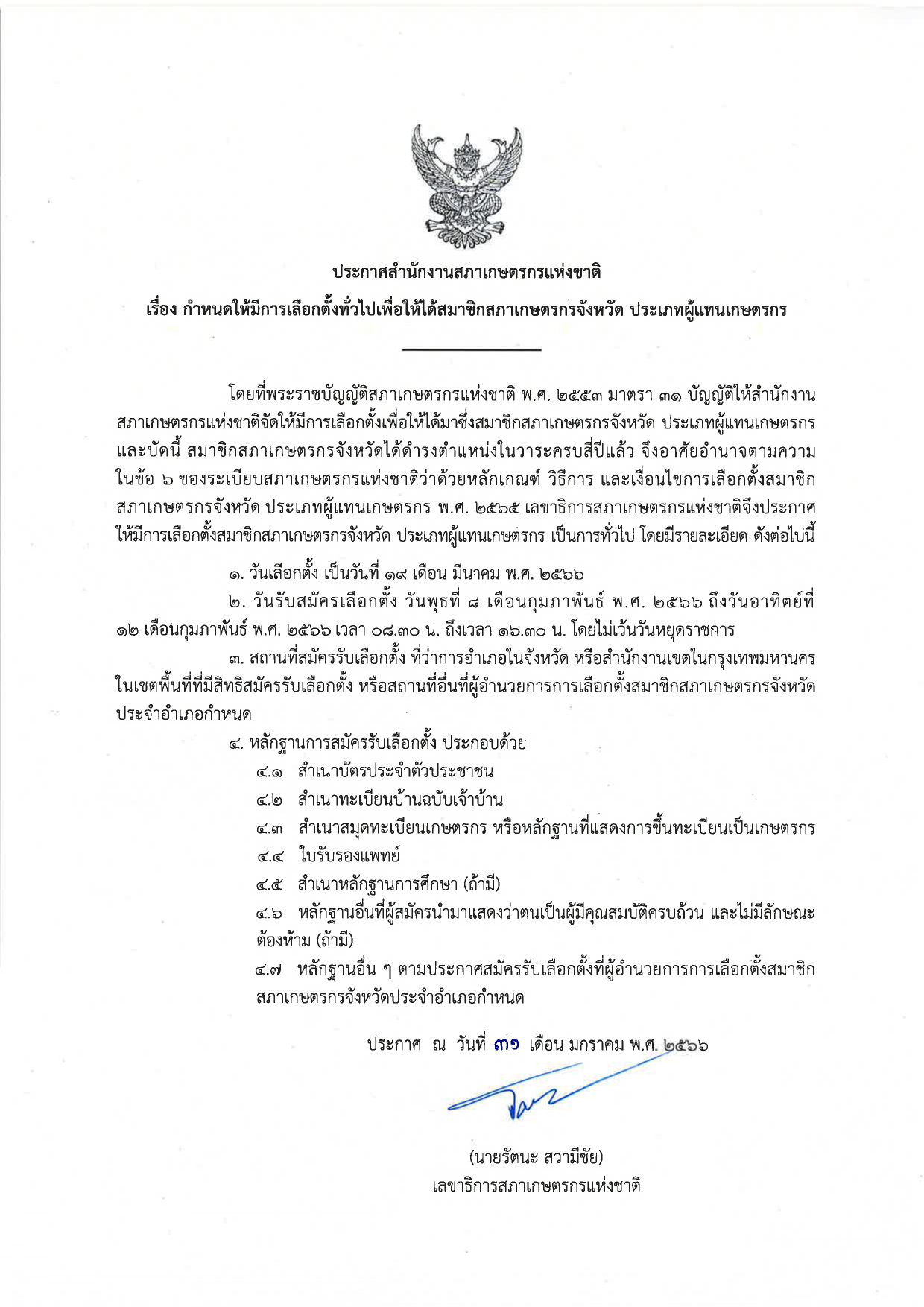 ประกาศสำนักงานสภาเกษตรกรแห่งชาติ เรื่อง กำหนดให้มีการเลือกตั้งทั่วไปเพื่อให้ได้สมาชิกสภาเกษตรกรจังหวัด ประเภทผู้แทนเกษตรกร 31 ม.ค. 25667 พ.ย. 2025Adminitratorข่าวกิจกรรม, ข่าวประชาสัมพันธ์
