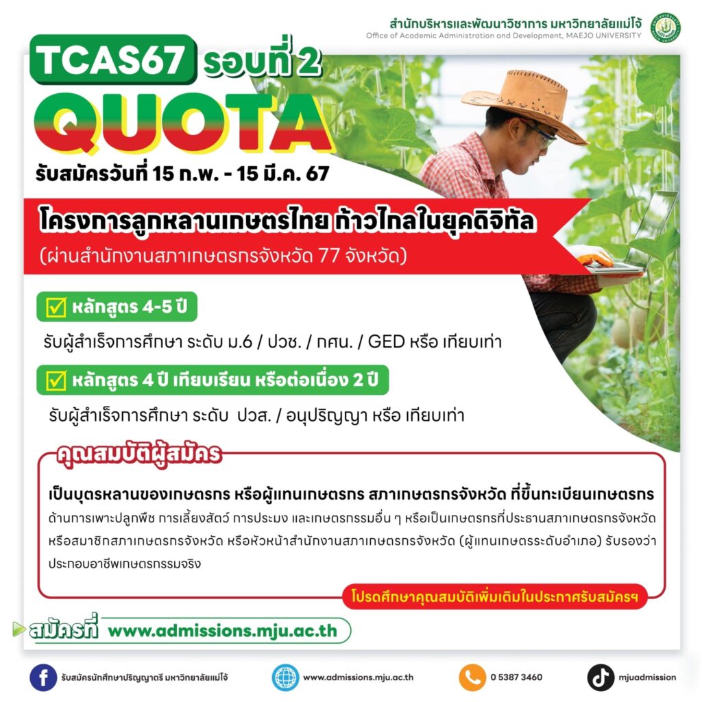 สำหรับ ม.6 /ปวช./กศน./GED : หลักสูตร 4-5 ปี GPAX 5 เทอม : https://admissions.mju.ac.th/www/Project.aspx?Acadyear=MjU2Nw==&RoundID=MjQ=&StudyYear=NA==