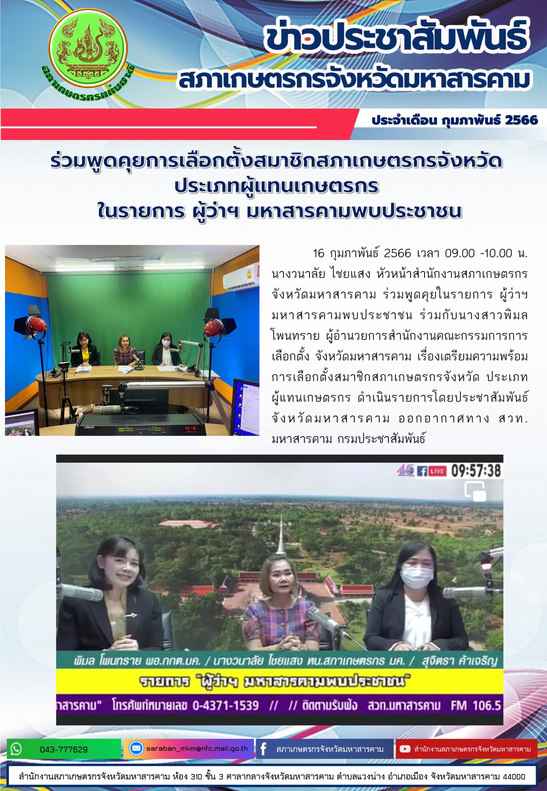 ประชาสัมพันธ์การเลือกตั้งฯ ในรายการ ผู้ว่าฯ มหาสารคามพบประชาชน 16 ก.พ. 25667 พ.ย. 2025Adminitratorข่าวกิจกรรม, ข่าวประชาสัมพันธ์