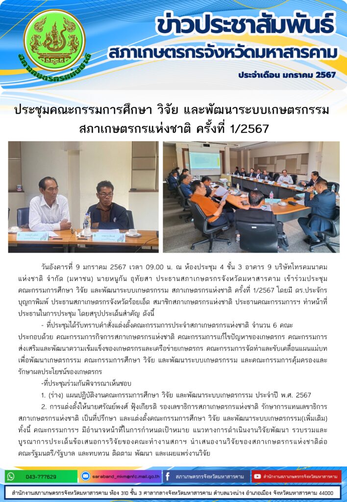 ประชุมคณะกรรมการศึกษา วิจัย และพัฒนาระบบเกษตรกรรม สภาเกษตรกรแห่งชาติ ครั้งที่ 1/2567 9 ม.ค. 25678 พ.ย. 2025Adminitratorข่าวประชาสัมพันธ์