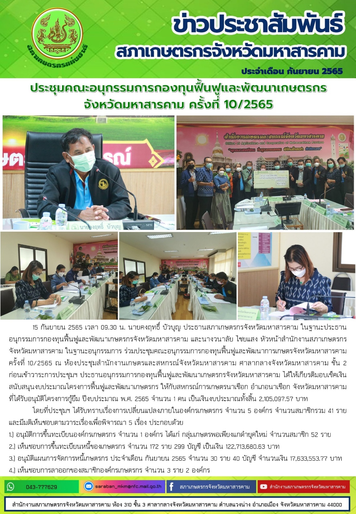 ประชุมคณะอนุกรรมการกองทุนฟื้นฟูและพัฒนาการเกษตรจังหวัดมหาสารคาม ครั้งที่ 10/2565 15 ก.ย. 25657 พ.ย. 2025Adminitratorข่าวกิจกรรม, ข่าวประชาสัมพันธ์
