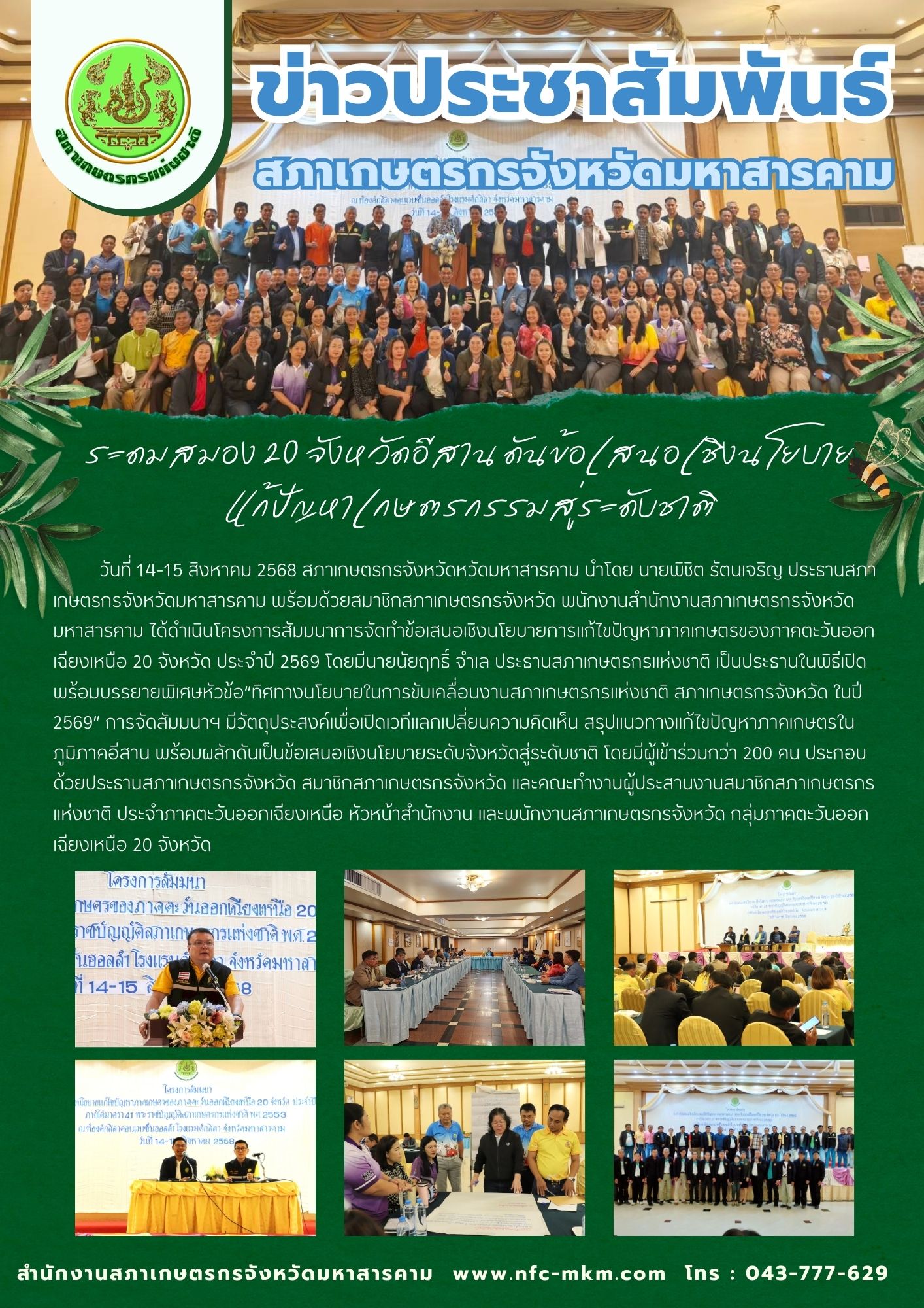 ระดมสมอง 20 จังหวัดอีสาน ดันข้อเสนอเชิงนโยบายแก้ปัญหาเกษตรกรรมสู่ระดับชาติ 15 ส.ค. 25688 พ.ย. 2025Adminitrator ดู : 0ข่าวประชาสัมพันธ์