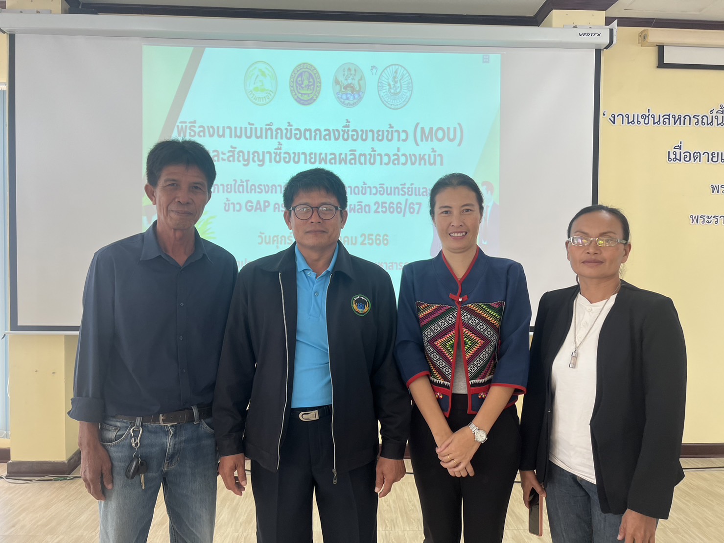 ร่วมการประชุมชี้แจงและการบันทึกข้อตกลงซื้อขายข้าว (MOU) และสัญญาซื้อขายผลผลิตข้าวล่วงหน้า ภายใต้โครงการเชื่อมโยงตลาดข้าวอินทรีย์ และข้าว GAP ครบวงจร ปีการผลิต 2566/67
