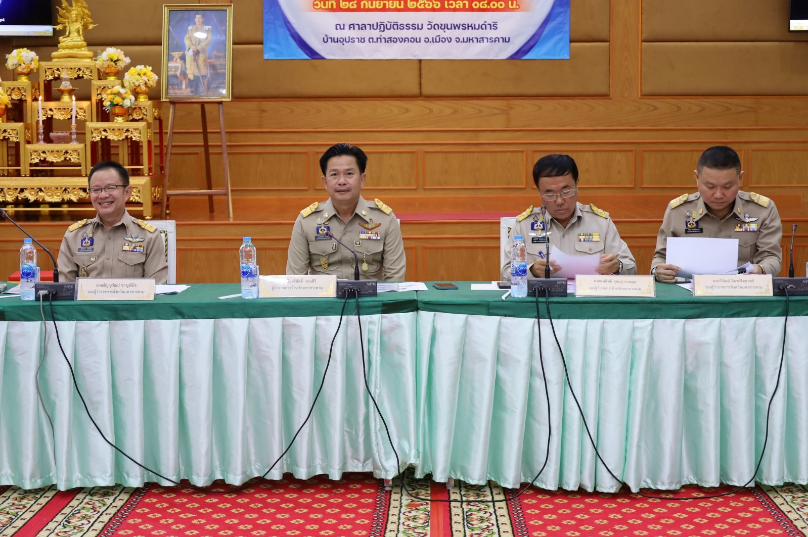 วันที่ 28 กันยายน 2566 เวลา 08.30 น. ที่ ศาลาปฏิบัติธรรม วัดขุนพรหมดำริ บ้านอุปราช ตำบลท่าสองคอน อำเภอเมืองมหาสารคาม จังหวัดมหาสารคาม นางสาวชมพูนุช ญาณะนันท์ หัวหน้าสำนักงานสภาเกษตรกรจังหวัดมหาสารคาม ร่วมประชุมคณะกรมการจังหวัดมหาสารคาม หัวหน้าส่วนราชการ และนายอำเภอ ประจำเดือนกันยายน 2566 โดยมี นายเกียรติศักดิ์ ตรงศิริ ผู้ว่าราชการจังหวัดมหาสารคาม เป็นประธานการประชุมและมี นายธัญญวัฒน์ ชาญพินิจ นายวิวัฒน์ อินทร์ไทยวงศ์ นายนพสิทธิ์ อุดมสุวรรณกุล รองผู้ว่าราชการจังหวัดมหาสารคาม พร้อมด้วย หัวหน้าส่วนราชการ และนายอำเภอ เข้าร่วมประชุม เพื่อหารือและร่วมพิจารณาผลการดำเนินงานในรอบเดือนที่ผ่านมากับส่วนราชการในจังหวัดมหาสารคาม