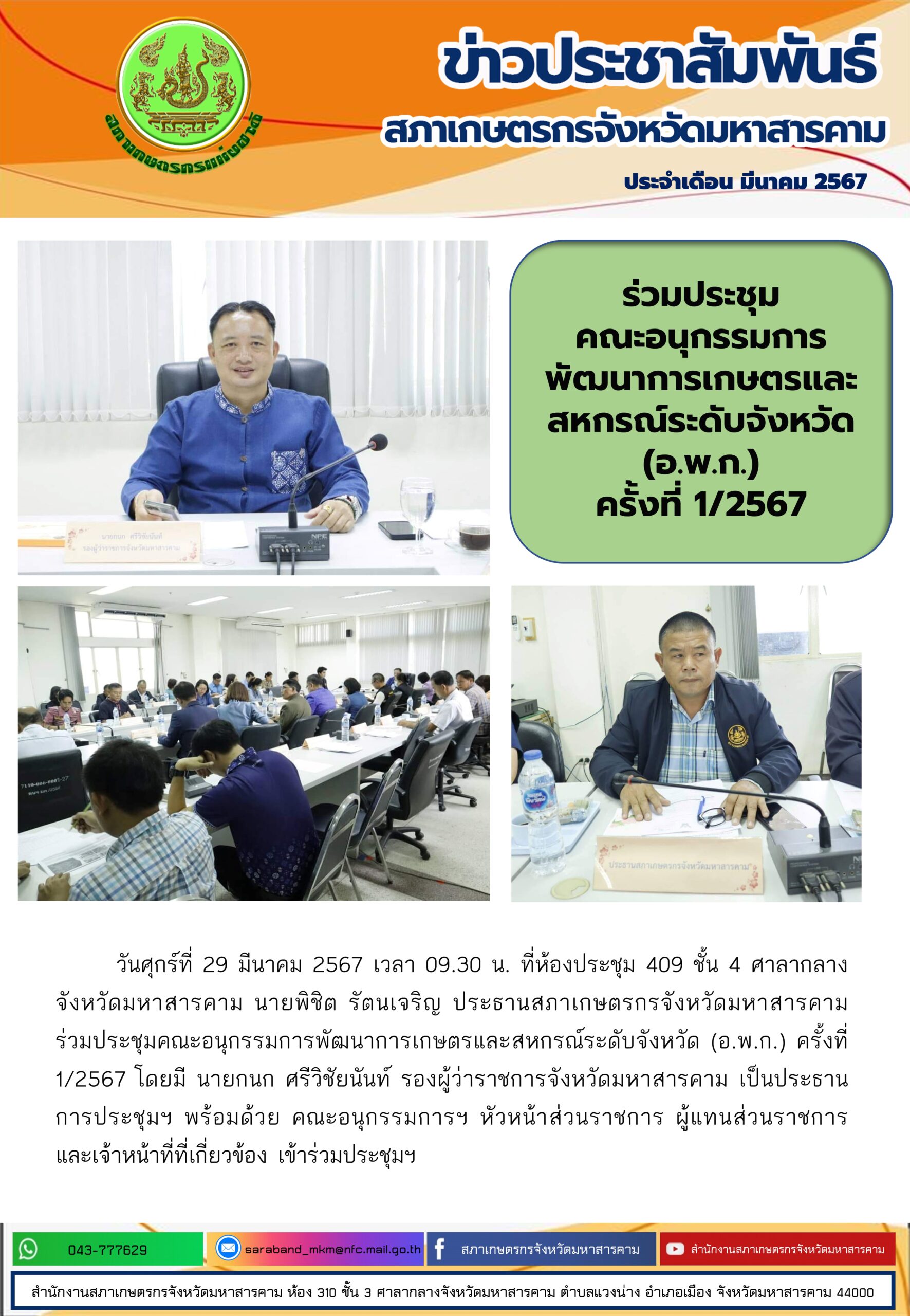 ร่วมประชุมคณะอนุกรรมการพัฒนาการเกษตรและสหกรณ์ระดับจังหวัด (อ.พ.ก.) ครั้งที่ 1/2567 29 มี.ค. 25678 พ.ย. 2025Adminitratorข่าวประชาสัมพันธ์