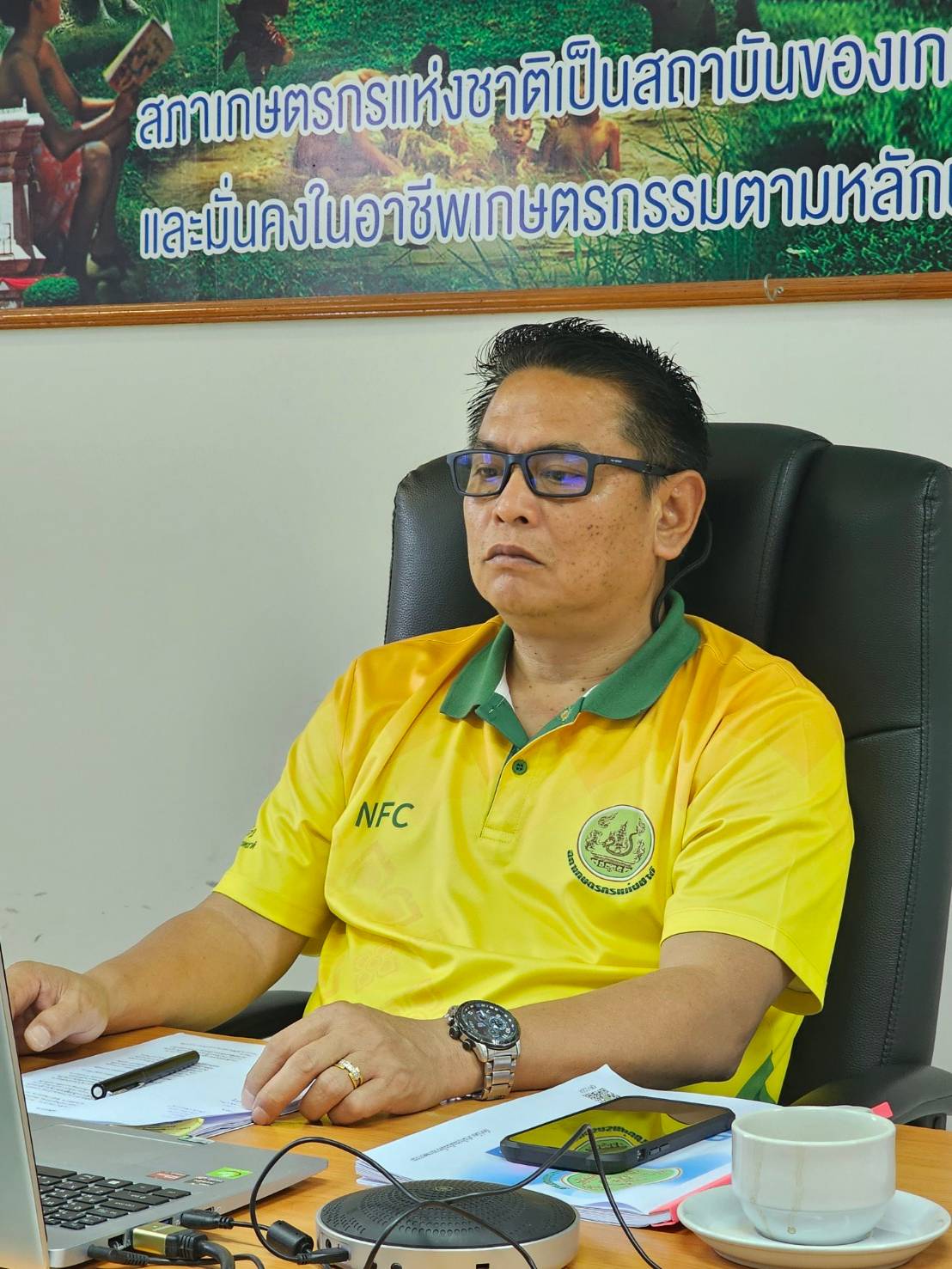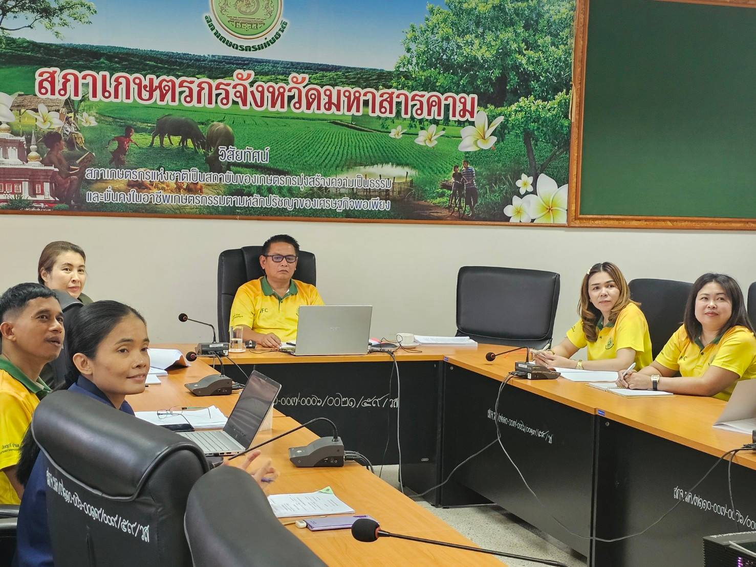 วันที่ 7 พฤศจิกายน 2567 เวลา 09.30 น. ที่ห้องประชุมสำนักงานสภาเกษตรกรจังหวัดมหาสารคา ห้อง 310 ศาลากลางจังหวัดมหาสารคาม นายชวณัฎฐ์ ถวิลการ หัวหน้าสำนักงานสภาเกษตรกรจังหวัดมหาสารคาม พร้องด้วยพนักงานฯ เข้าร่วมประชุมชี้แจงแนวทางการปฏิบัติงานสำนักงานสภาเกษตรกรแห่งชาติ ประจำปีงบประมาณ พ.ศ. 2568 ผ่านระบบประชุมทางไกลผ่านสื่ออิเล็กทรอนิกส์ เพื่อทราบแผนแม่บทเพื่อพัฒนาเกษตรกรรม การประเมินคุณธรรมและความโปร่งใสในการดำเนินงาน ของหน่วยงานภาครัฐ (ITA) ประกาศสำนักนายกรัฐมนตรี เรื่องการกำกับดูแลองค์การที่ดีของสำนักงานสภาเกษตรกรแห่งชาติ ตามหลักเกณฑ์และวิธีการ บริหารกิจการบ้านเมืองที่ดี ประจำปีงบประมาณ พ.ศ. 2568 การจัดตั้งศูนย์ประสานงานให้การช่วยเหลือเกษตรกร และคุ้มครองสิทธิเกษตรกร และตัวชี้วัดสำนักงานสภาเกษตรกรจังหวัด ประจำปีงบประมาณ พ.ศ. 2568