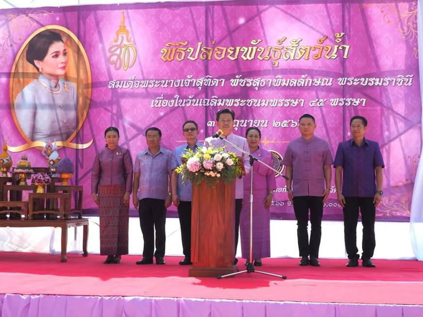 ร่วมปล่อยพันธุ์สัตว์น้ำเนื่องในวันเฉลิมพระชนมพรรษา สมเด็จพระนางเจ้าสุทิดา พัชรสุธาพิมลลักษณ พระบรมราชินี
