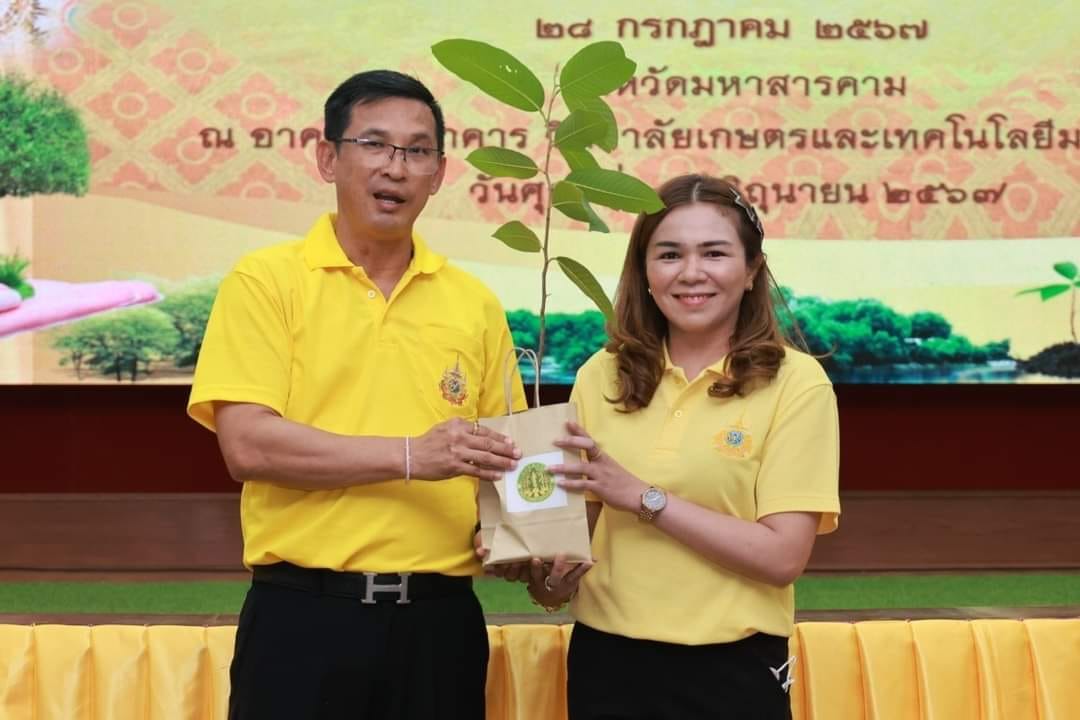 วันที่ 14 มิถุนายน 2567 เวลา 13.00 น. ที่ห้องประชุมเทพาคาร วิทยาลัยเกษตรและเทคโนโลยีมหาสารคาม นางสาวชมพูนุช ญาณะนันท์ หัวหน้าสำนักงานสภาเกษตรกรจังหวัดมหาสารคาม มอบหมายให้นางสาวสุประวีณ์ คำชื่น หัวหน้าฝ่ายอำนวยการ ร่วมพิธีมอบกล้าไม้ ภายใต้ “โครงการ 72 ล้านต้น พลิกฟื้นผืนป่า เฉลิมพระเกียรติพระบาทสมเด็จพระเจ้าอยู่หัว เนื่องในโอกาสพระราชพิธีมหามงคลเฉลิมพระชนมพรรษา 6 รอบ 28 กรกฎาคม 2567 โดยมีนายวิบูรณ์ แววบัณฑิต ผู้ว่าราชการจังหวัดมหาสารคาม เป็นประธาน เพื่อน้อมนําแนวพระราชดําริ พระราชปณิธาน และพระบรมราโชบายเกี่ยวกับการพัฒนาสิ่งแวดล้อม พัฒนาคุณภาพชีวิตของประชาชนให้อยู่ดีมีสุข และเพื่อเป็นการฟื้นฟูและรักษาสภาพป่าต้นน้ำ รวมถึงการคืนสภาพโครงสร้างของระบบนิเวศให้กับผืนป่าทั่วประเทศ ระยะเวลาดำเนินการในห้วงเดือนกรกฎาคม – กันยายน 2567 และได้กำหนดกิจกรรม Kick Off โครงการฯ ในวันจันทร์ที่ 24 มิถุนายน 2567 เวลา 08.30 น. เป็นต้นไป ณ วัดป่าวังเลิง ตำบลท่าขอนยาง อำเภอกันทรวิชัย พร้อมเชิญชวนประชาชน หน่วยงานภาครัฐ ภาคเอกชน และทุกภาคส่วนได้ร่วมเฉลิมพระเกียรติฯ