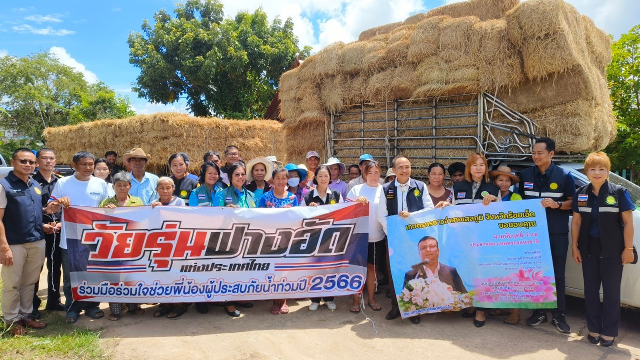 ร่วมพิธีมอบฟางอัดก้อน ข้าวสาร และน้ำดื่ม และศึกษาวิธีการช่วยเหลือเกษตรกรผู้ประสบอุทกภัย จ.ร้อยเอ็ด