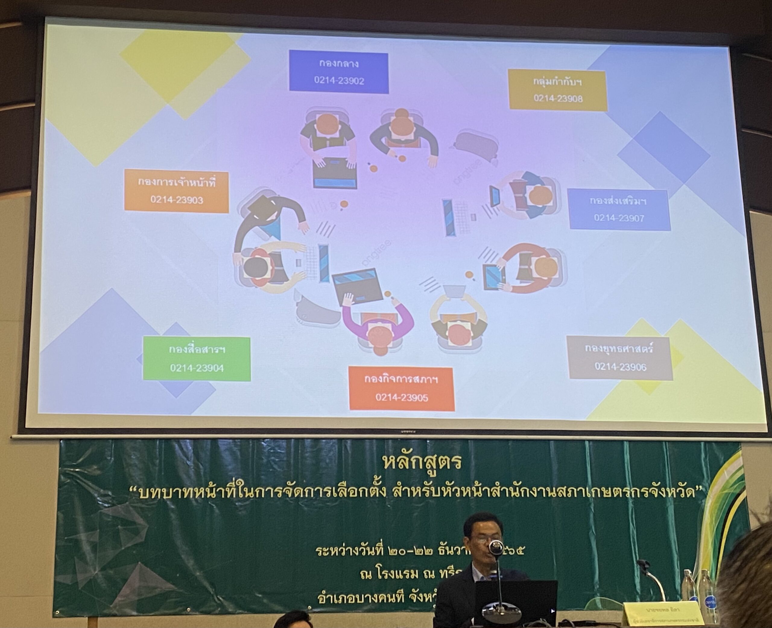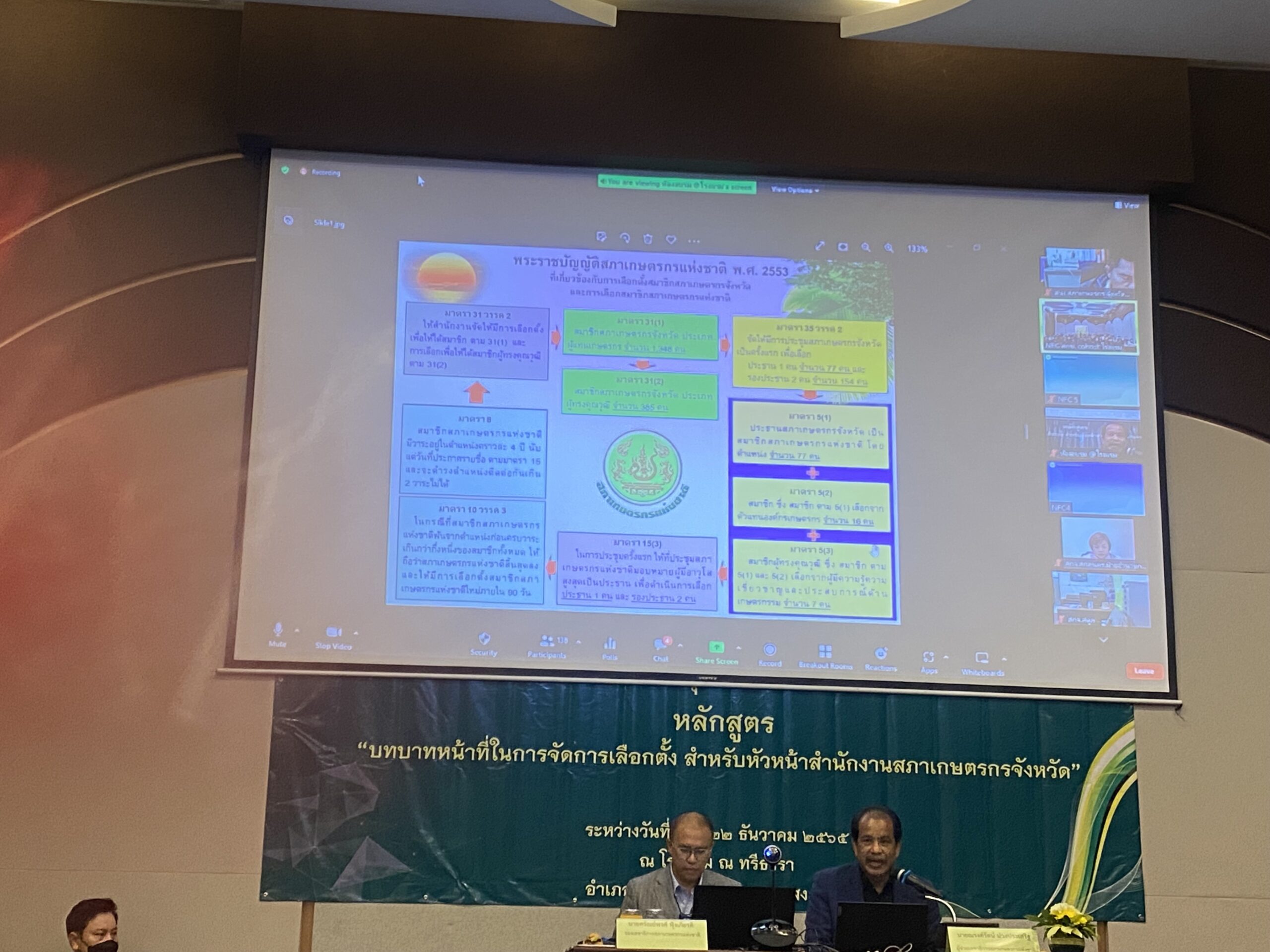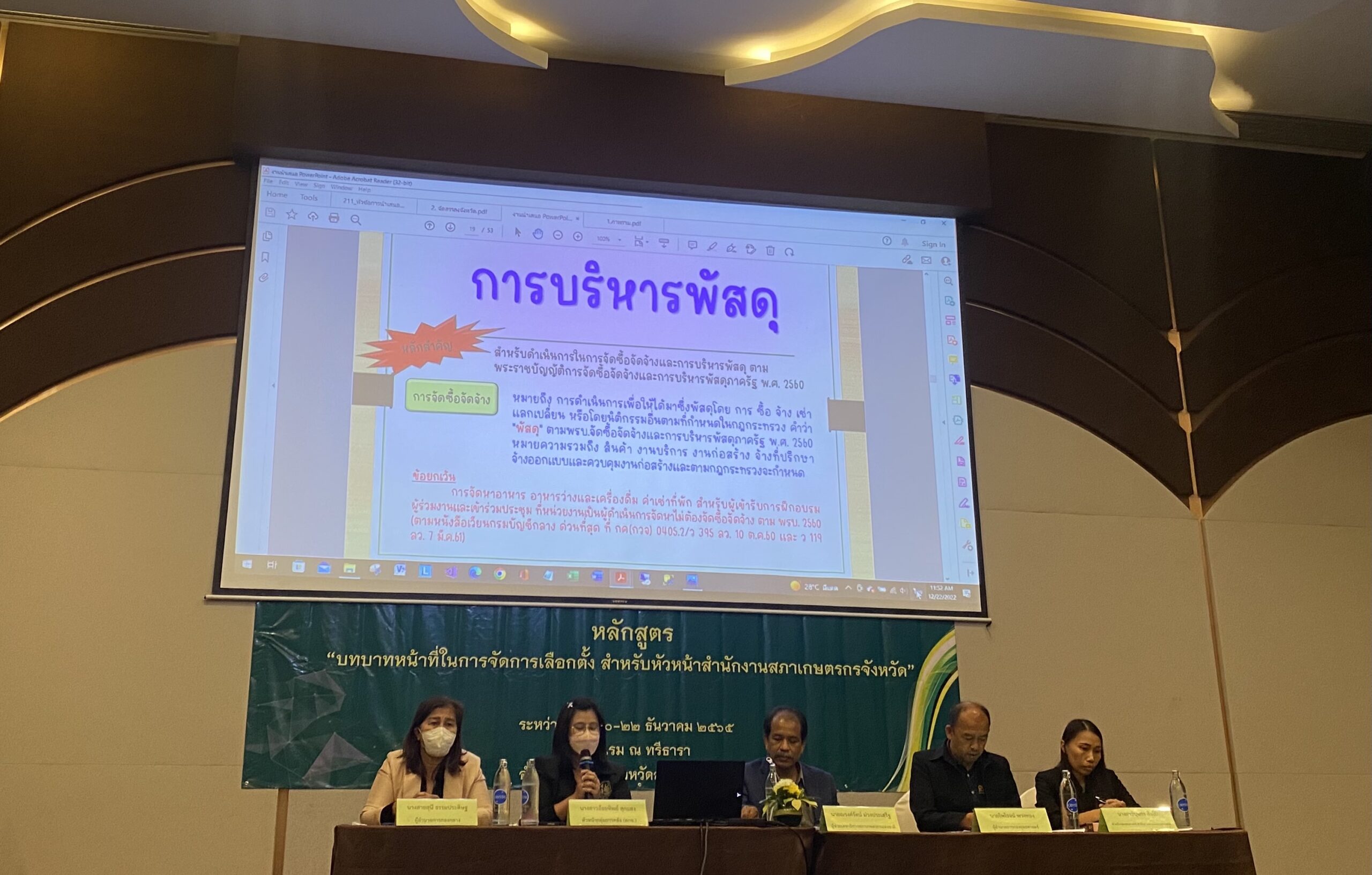 ร่วมโครงการฝึกอบรมสัมมนาเชิงปฏิบัติการเพื่อเตรียมความพร้อมด้านการปฏิบัติงานและการประสานจัดการเลือกตั้งสมาชิกสภาเกษตรกรจังหวัด และการเลือกสมาชิกสภาเกษตรกรแห่งชาติ รุ่นที่ 1