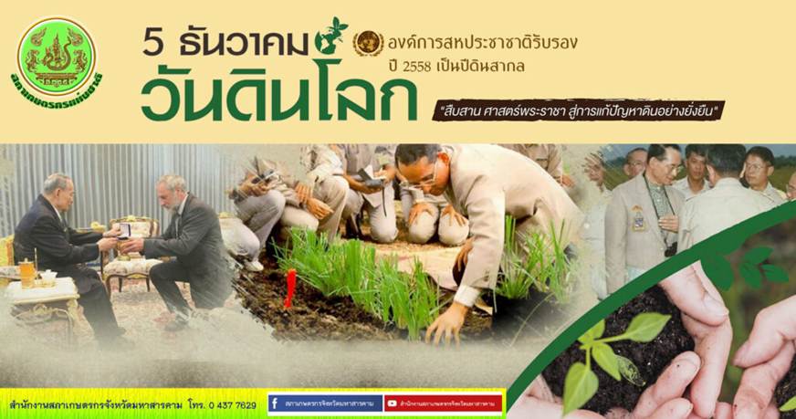 “วันดินโลก (World Soil Day)” คือ วันที่ 5 ธันวาคม เป็นวันสำคัญที่นักปฐพีวิทยาทั่วโลก 60,000 คน จะเฉลิมฉลองเป็นประจำทุกปี ซึ่งนักปฐพีวิทยาของไทยทุกคนภาคภูมิใจ เนื่องจากวงการปฐพีวิทยานานาชาติ มีฉันทานุมัติเลือกวันที่ 5 ธันวาคมของทุกปี ซึ่งตรงกับวันคล้ายวันพระราชสมภพของ พระบาทสมเด็จพระมหาภูมิพลอดุลยเดชมหาราช บรมนาถบพิตร เป็นวันดินโลก และนักปฐพีวิทยาของไทยมีส่วนร่วมในการเชิดชูพระอัจฉริยภาพด้านการอนุรักษ์ และพัฒนาทรัพยากรดินขององค์พระบาทสมเด็จพระมหาภูมิพลอดุลยเดชมหาราช บรมนาถบพิตร