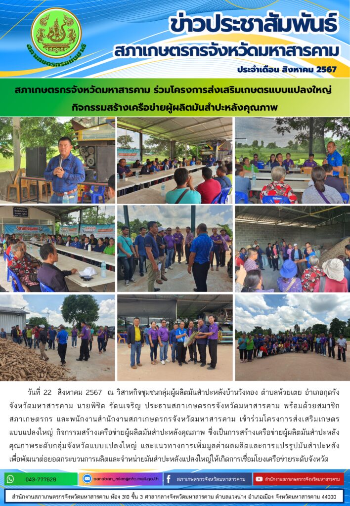 สภาเกษตรกรจังหวัดมหาสารคาม ร่วมโครงการส่งเสริมเกษตรแบบแปลงใหญ่ กิจกรรมสร้างเครือข่ายผู้ผลิตมันสำปะหลังคุณภาพ