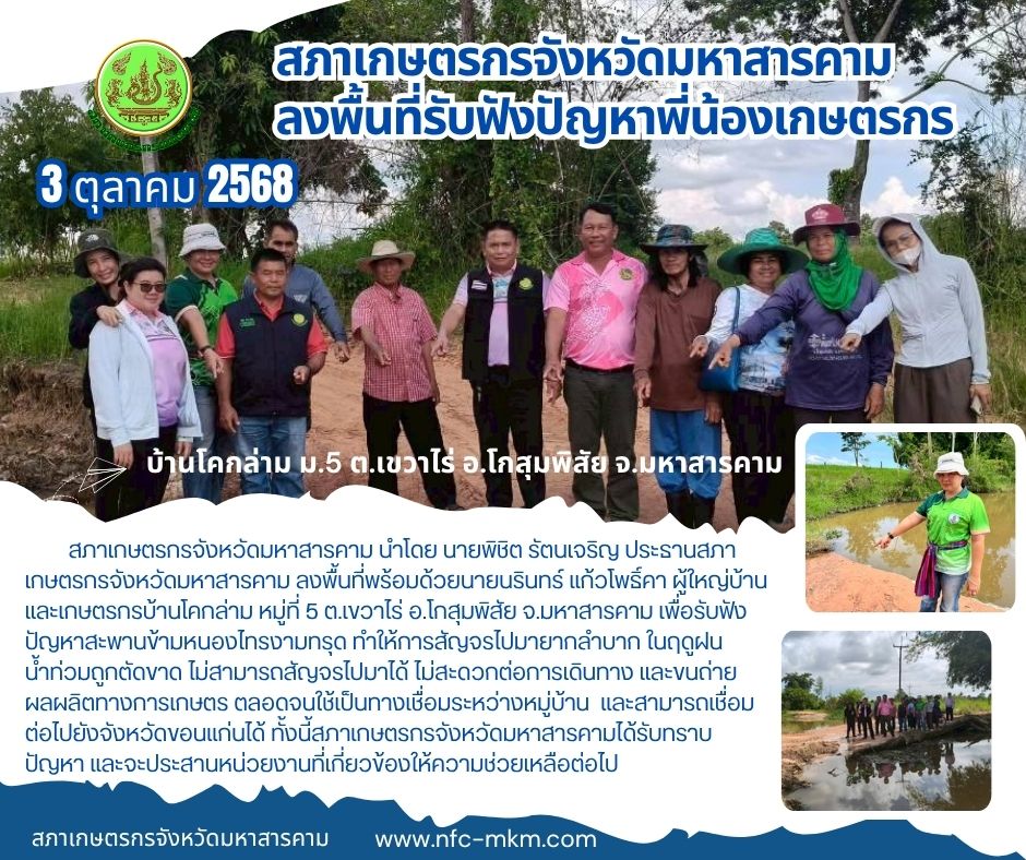 สภาเกษตรกรจังหวัดมหาสารคามลงพื้นที่รับฟังปัญหาพี่น้องเกษตรกร 3 ต.ค. 25688 พ.ย. 2025Adminitratorข่าวประชาสัมพันธ์