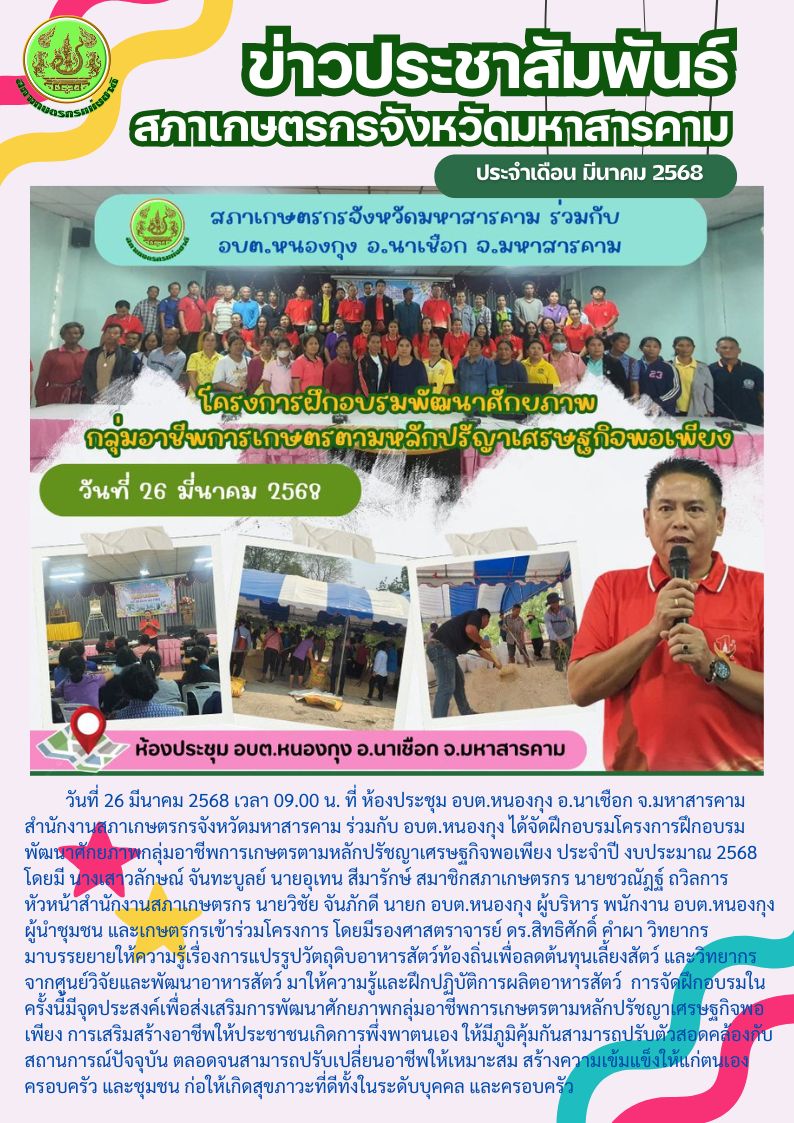 สภาเกษตรกรฯ ร่วมกับ อบต.หนองกุง จัดฝึกอบรมโครงการฝึกอบรมพัฒนาศักยภาพกลุ่มอาชีพการเกษตรตามหลักปรัชญาเศรษฐกิจพอเพียง ประจำปี งบประมาณ 2568