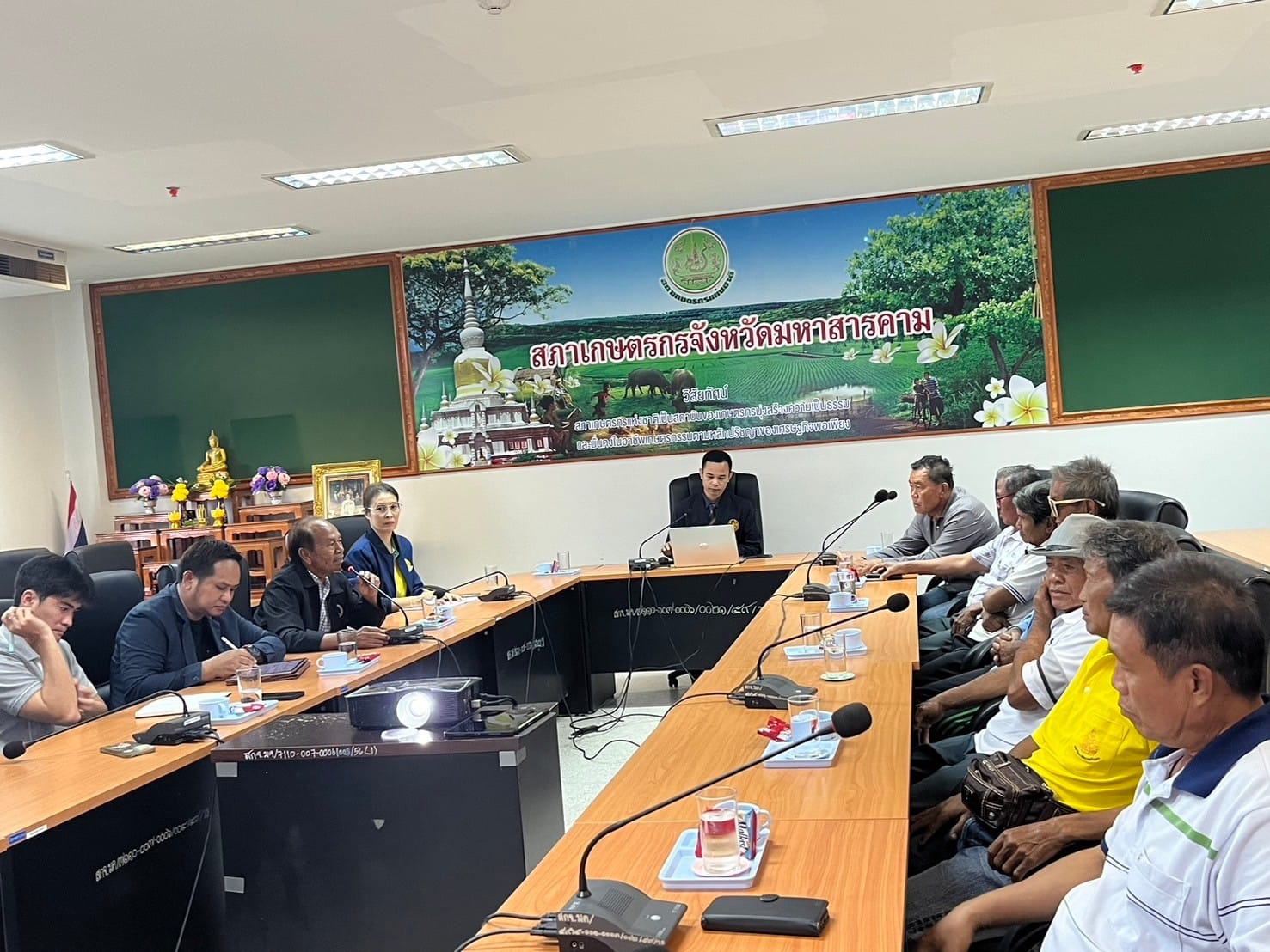 วันที่ 15 พฤศจิกายน 2567 ที่ห้องประชุมสำนักงา่นสภาเกษตรกรจังหวัดมหาสารคาม นายพิชิต รัตนเจริญ ประธานสภาเกษตรกรจังหวัดมหาสารคาม ร.ศ.ดร.สิทธิศักดิ์ คำผา ที่ปรึกษาสภาเกษตรกรจังหวัดมหาสารคาม นายชวณัฎฐ์ ถวิลการ หัวหน้าสำนักงานสภาเกษตรกรจังหวัดมหาสารคาม ร่วมกับวิสาหกิจชุมชนโคเนื้อโคขุนมัญจาวากิว จังหวัดขอนแก่น และหอการค้าจังหวัดมหาสารคาม ได้จัดประชุมร่วมหารือแนวทางการรับซื้อโคเนื้อ จากกลุ่มเกษตรกร องค์กรเกษตรกรผู้เลี้ยงโคเนื้อในพื้นที่จังหวัดมหาสารคาม เพื่อบูรณาการขับเคลื่อนการยกระดับโคเนื้อเพื่อสร้างความยั่งยืนให้กับเกษตรกร พร้อมทั้งจัดทำเป็นข้อเสนอเพื่อกำหนดนโยบาย แนวทางการแก้ไขปัญหา เกษตรกรและการพัฒนาเกษตรกรรม สภาเกษตรกรจังหวัดมหาสารคามประจำปี 2568