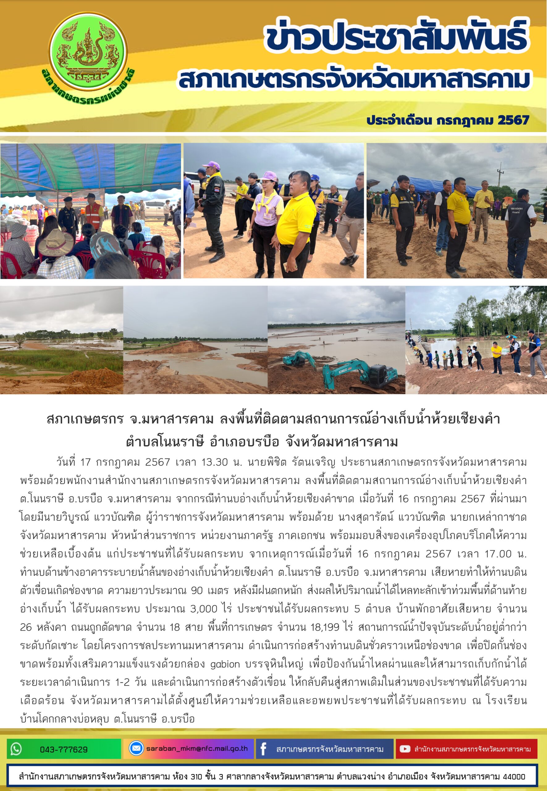 สภาเกษตรกร จ.มหาสารคาม ลงพื้นที่ติดตามสถานการณ์อ่างเก็บน้ำห้วยเชียงคำ ต.โนนราษี อ.บรบือ 17 ก.ค. 25678 พ.ย. 2025Adminitratorข่าวประชาสัมพันธ์