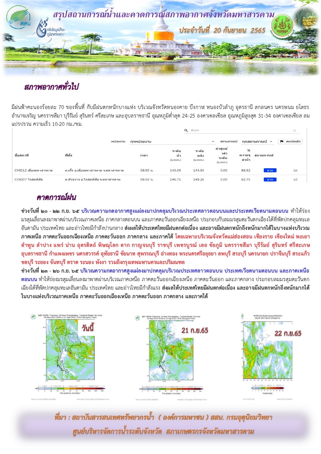 สรุปสถานการณ์น้ำและคาดการณ์สภาพอากาศจังหวัดมหาสารคาม 20 ก.ย. 25657 พ.ย. 2025Adminitratorข่าวกิจกรรม, ข่าวประชาสัมพันธ์