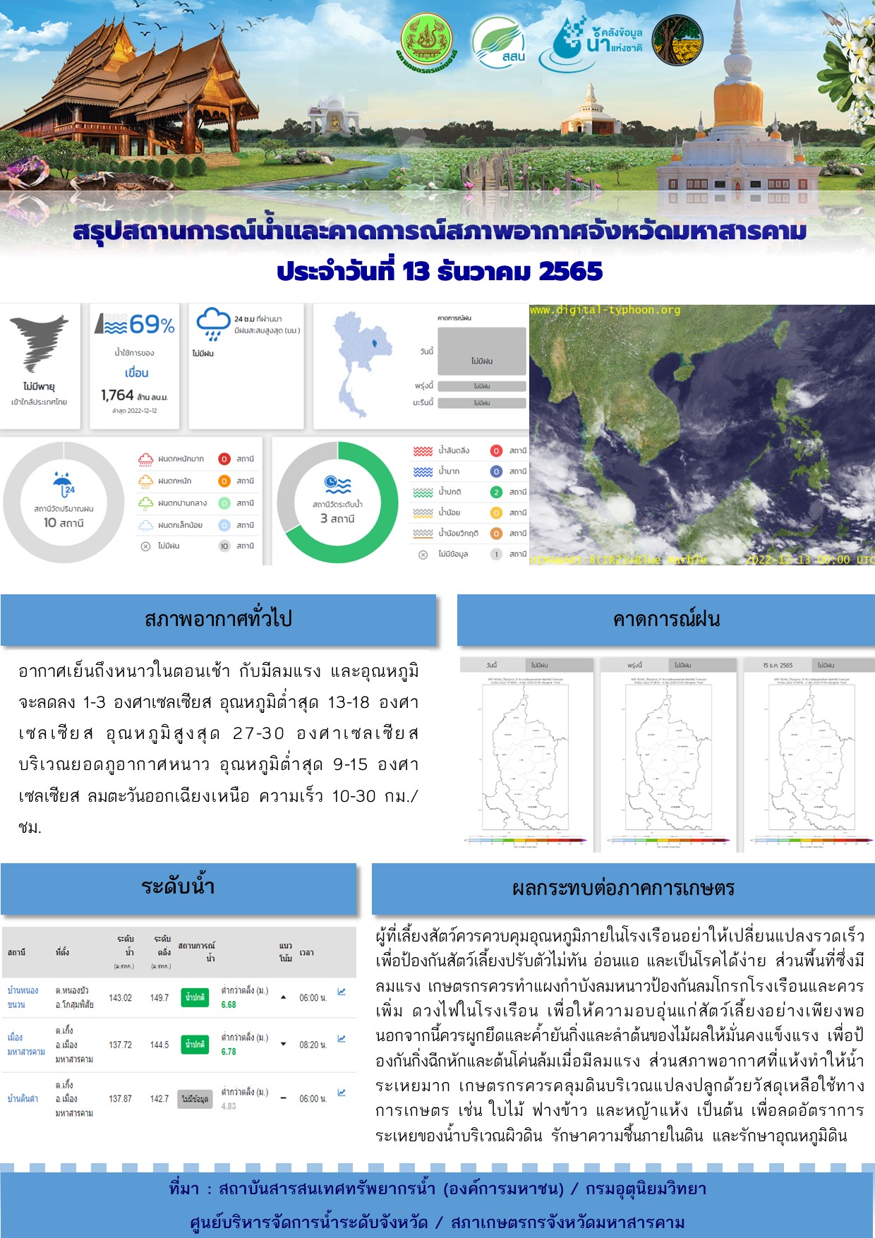 สรุปสถานการณ์น้ำและคาดการณ์สภาพอากาศจังหวัดมหาสารคาม