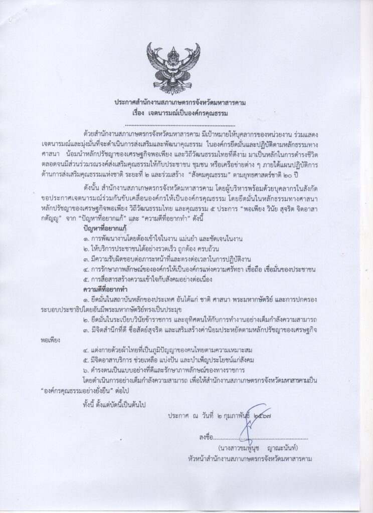 สำนักงานสภาเกษตรกรจังหวัดมหาสารคามประกาศเจตนารมณ์เป็นองค์กรคุณธรรม 2 ก.พ. 25678 พ.ย. 2025Adminitratorข่าวประชาสัมพันธ์
