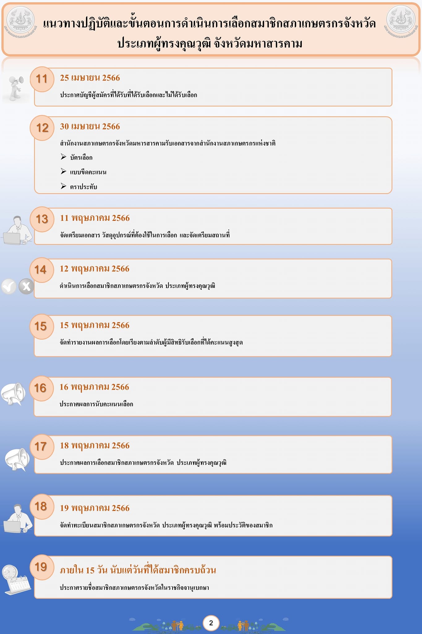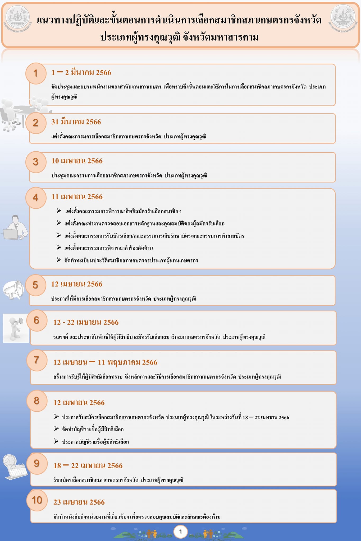 แนวทางปฏิบัติและขั้นตอนการดำเนินการเลือกสมาชิกสภาเกษตรกรจังหวัด ประเภทผู้ทรงคุณวุฒิ จังหวัดมหาสารคาม 17 เม.ย. 25667 พ.ย. 2025Adminitratorข่าวประชาสัมพันธ์