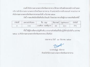 ประกาศรายชื่อผู้ผ่านการสอบคัดเลือกพนักงานจ้างเหมาบริการสำนักงานสภาเกษตรกรจังหวัดมหาสารคาม ตำแหน่ง พนักงานขับรถยนต์